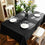 La forme rectangulaire de cette nappe en fait un choix versatile pour toutes les formes de table, s'adaptant parfaitement tant aux grandes tables de banquet qu'aux plus petites tables de cuisine. Sa couleur noire sobre permet une grande liberté dans le choix de votre décoration, s'harmonisant avec n'importe quel style d'intérieur.