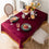 Cette nappe rouge en velours transcende toutes vos attentes pour devenir une pièce maîtresse de votre décoration intérieure. Les pampilles dorées captent la lumière, ajoutant une dimension visuelle captivante qui enchantera vos invités. Son allure majestueuse est parfaite pour embellir vos moments de partage et festivités.